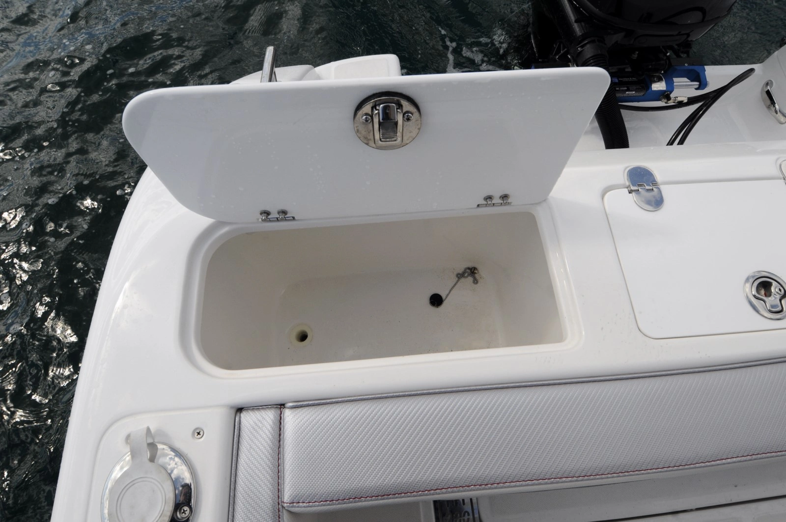 L'arrière est spécialement aménagé pour la pêche, vous y trouverez trois viviers de grandes capacités, des porte-cannes et des espaces de rangement pour tous vos équipements.