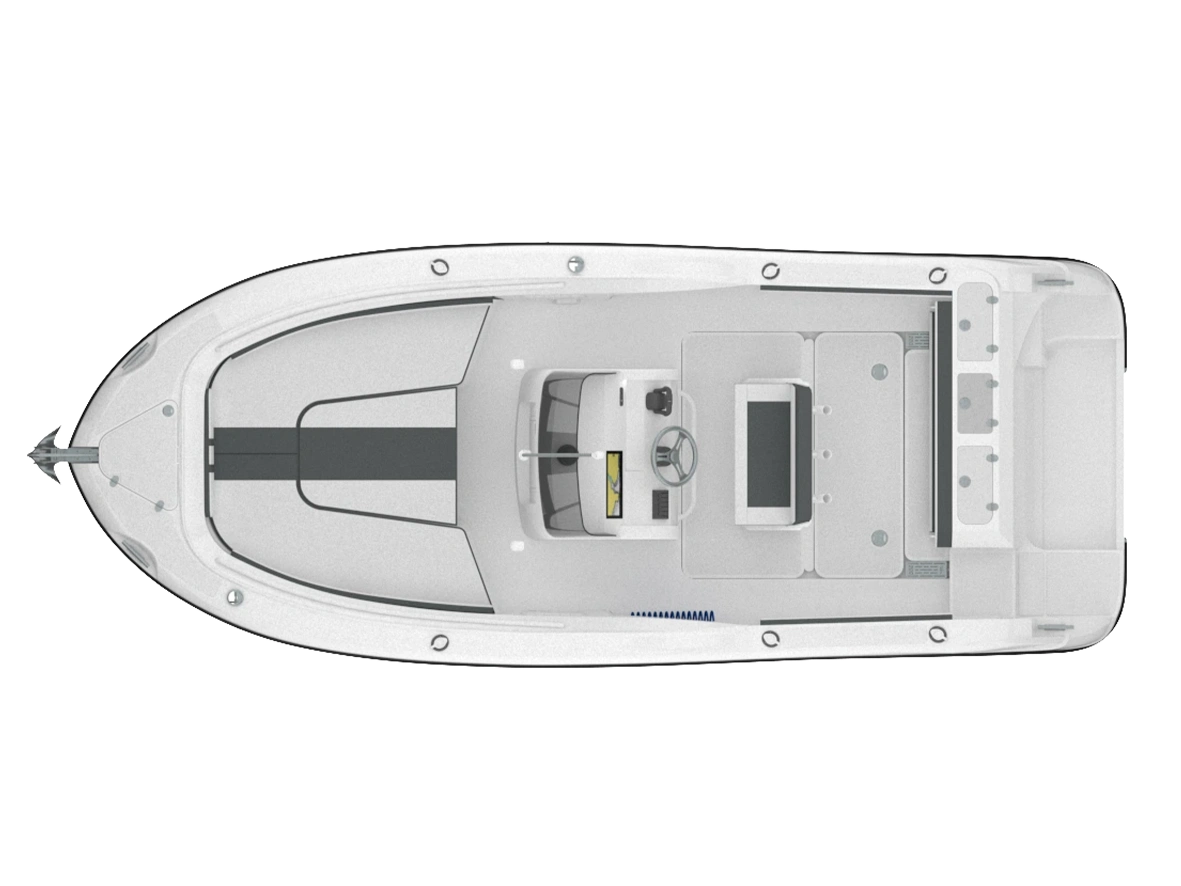 Pensé aussi pour les sorties en famille, il est équipé de sièges confortables, d'une table centrale amovible et de nombreux espaces de rangement. La hauteur de coque latérale garantit la sécurité des plus jeunes et le taud de soleil rigide une protection contre le soleil pour rendre les journées en mer agréables pour tous.