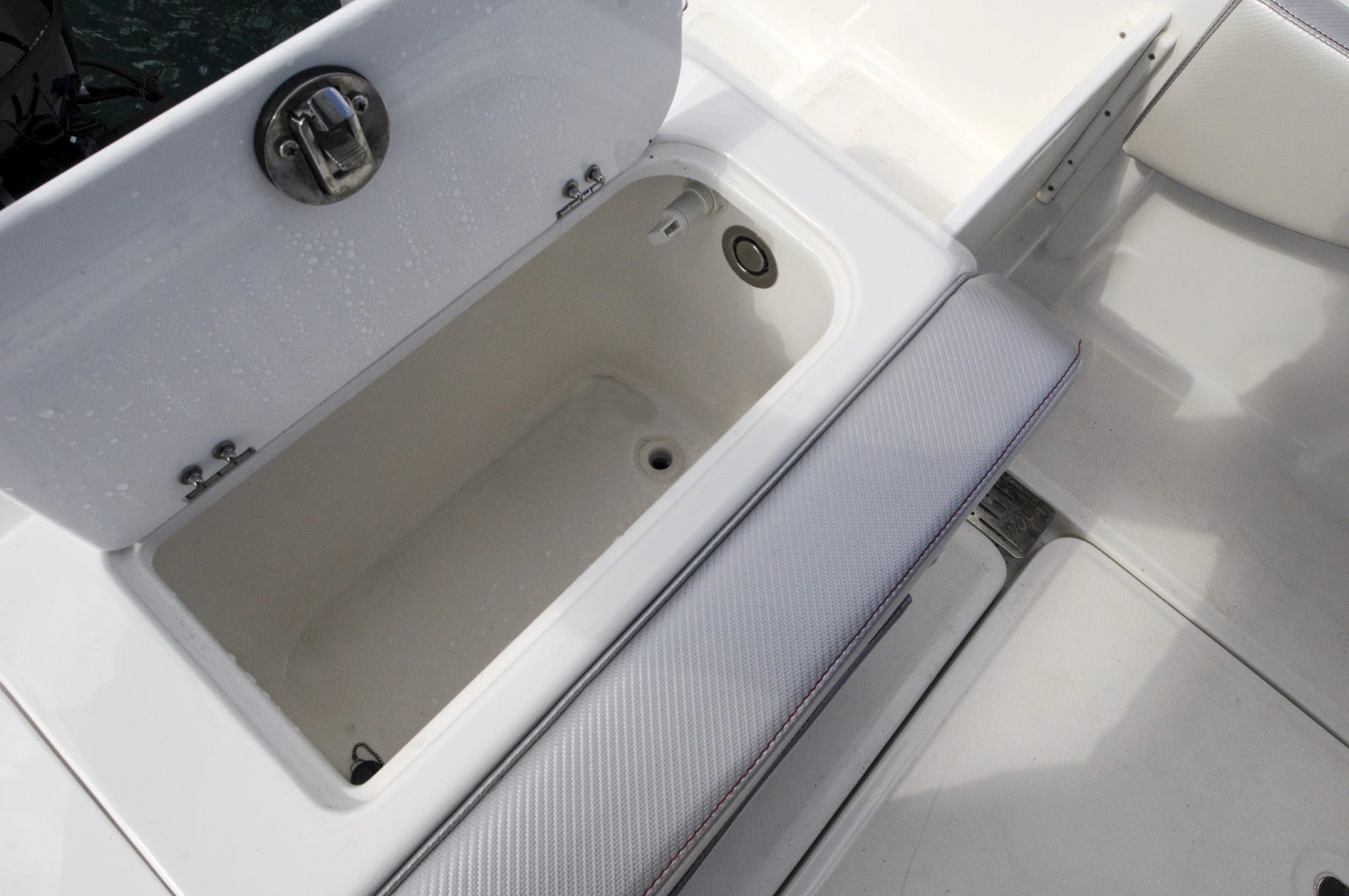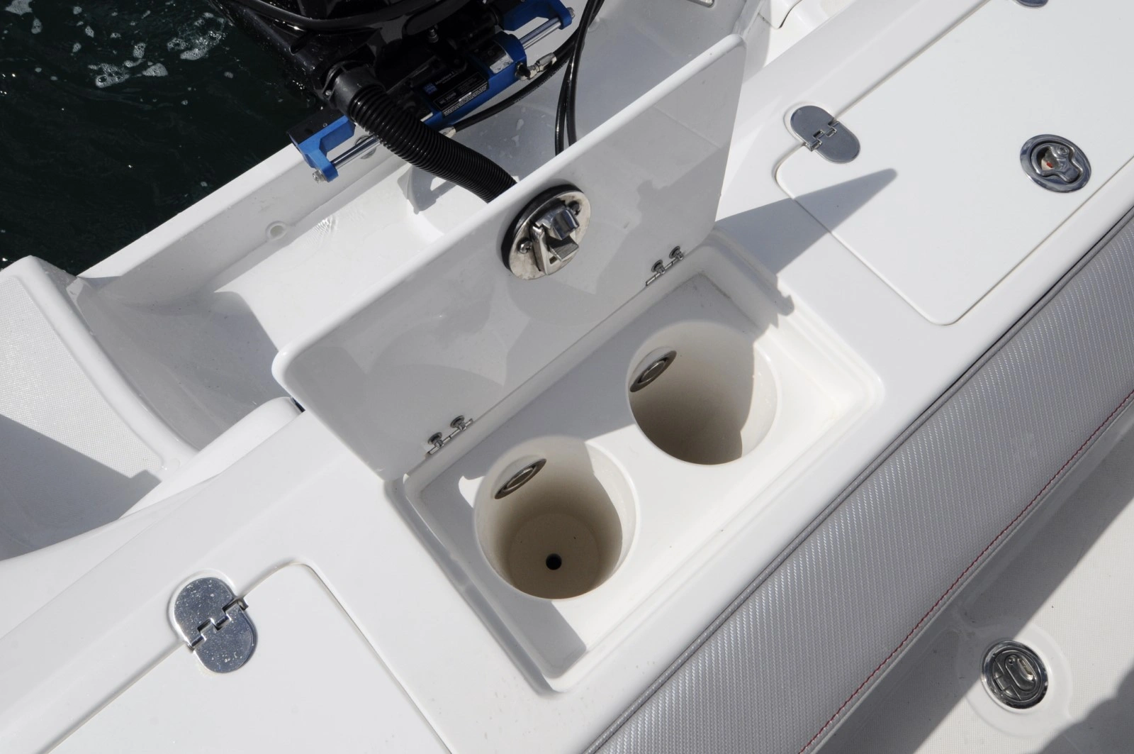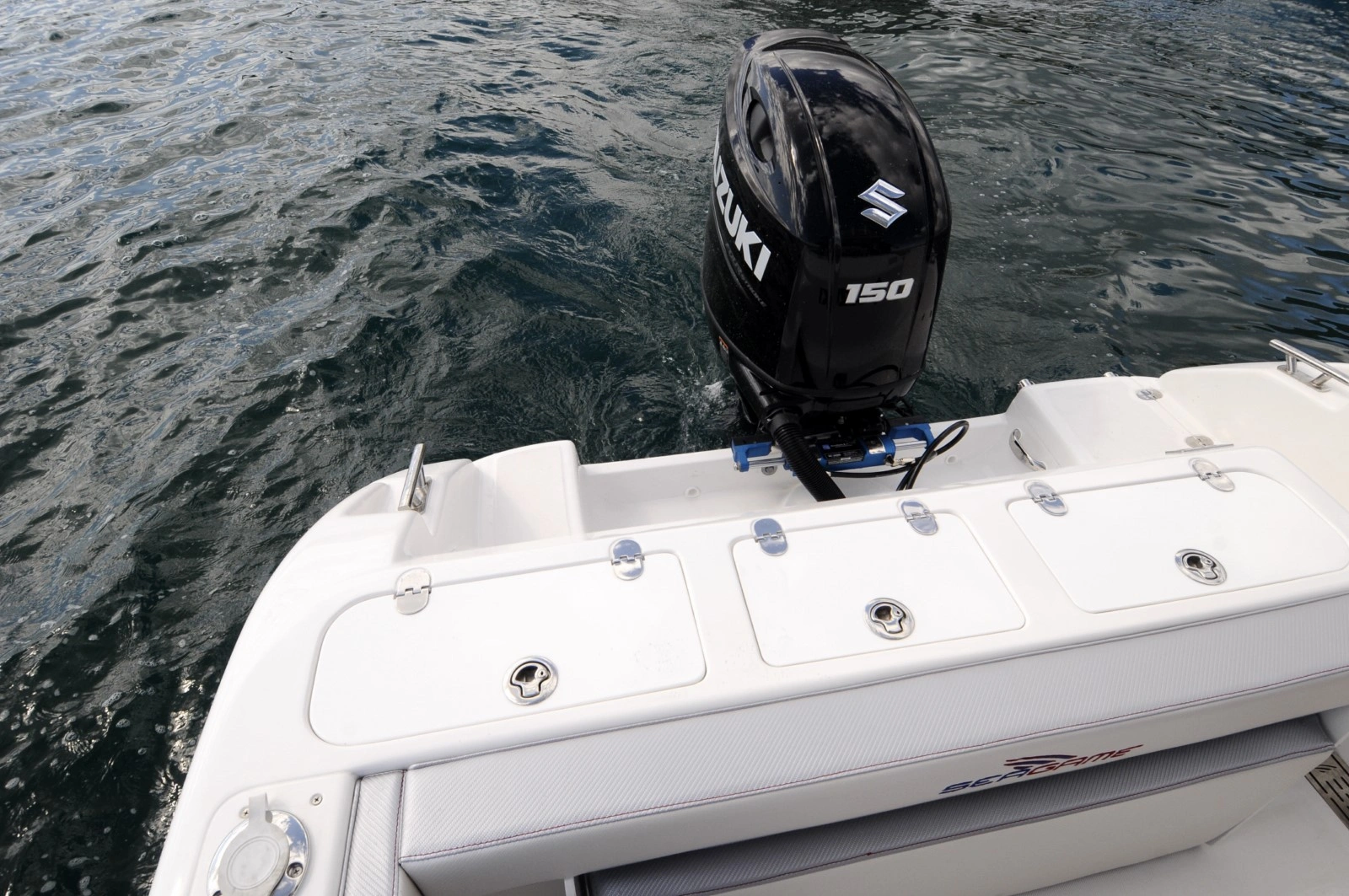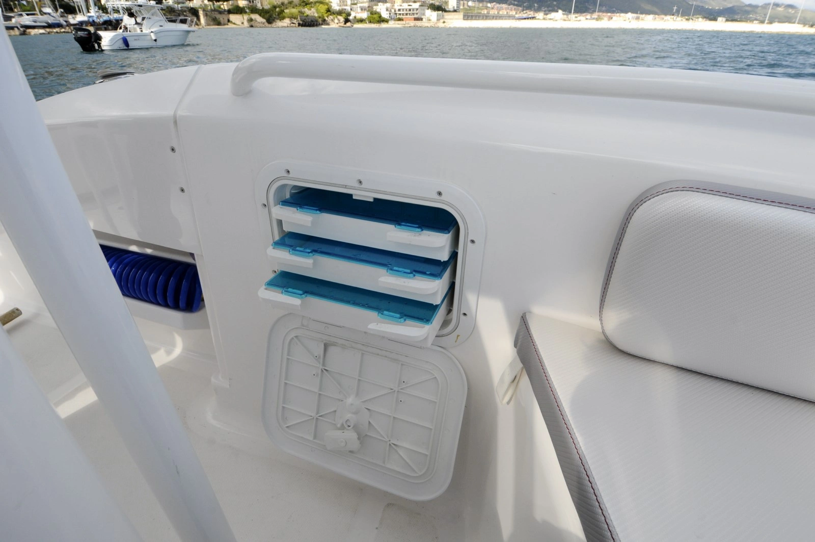 L'arrière est spécialement aménagé pour la pêche, vous y trouverez trois viviers de grandes capacités, des porte-cannes et des espaces de rangement pour tous vos équipements.