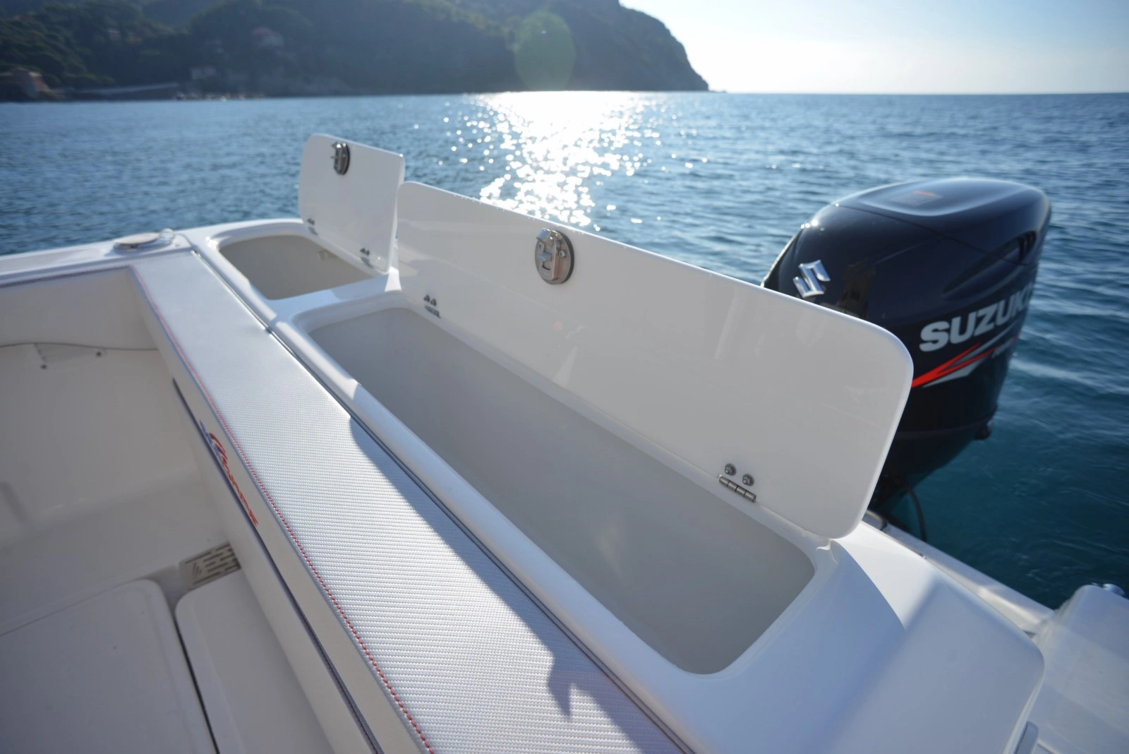 Conçu pour allier performance et confort, ce bateau de pêche sportive est le compagnon idéal pour les amateurs de sensations fortes sur l’eau, tout en offrant la sécurité et l’espace nécessaires pour accueillir toute la famille. Agile et puissant, il se distingue par sa manœuvrabilité, sa stabilité, et sa robustesse, garantissant une expérience de navigation sereine même par mer agitée.